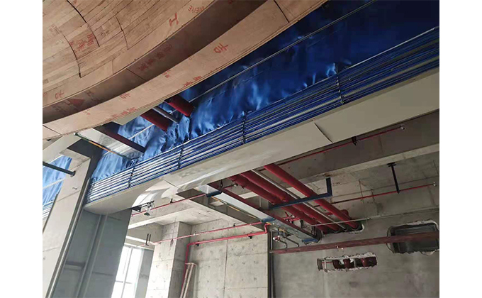 擋煙垂簾垂壁根據(jù)設(shè)計(jì)要求和現(xiàn)場(chǎng)實(shí)際情況采取如下施工順序:首先,搭設(shè)腳手架一放線一打眼--上脹栓一焊骨架。第二,吊件一安裝骨架…